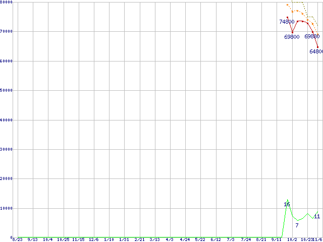 | SSDSA2MH080G1C5 (80GB,MLC)の価格推移 | | | (2007年8月23日~2008年11月6日) |