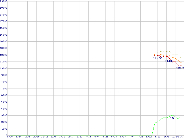 | Athlon X2 6000+ (3.1GHz,L2 512KB×2)の価格推移 | | | (2007年8月24日~2008年11月7日) |
