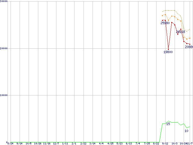 | Core 2 Quad Q8200 (2.33GHz,L2 2MB×2)の価格推移 | | | (2007年8月24日~2008年11月7日) |
