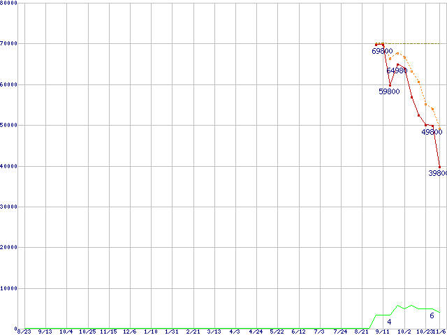 | OCZSSD2-2C120G (120GB,MLC)の価格推移 | | | (2007年8月23日~2008年11月6日) |