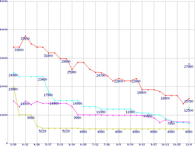 メモリ主要製品の最安値推移