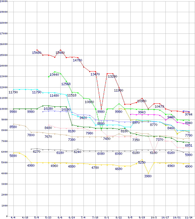 ※製品名をクリックすると個別のグラフを表示します ※点線部は販売店が確認できなかった、または調査データがないことを示します |