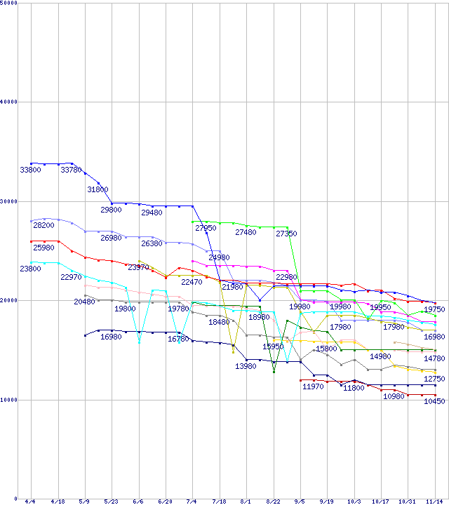 ※製品名をクリックすると個別のグラフを表示します ※点線部は販売店が確認できなかった、または調査データがないことを示します |