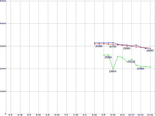 CPU主要製品(最安値2万円~3万円未満)の最安値推移