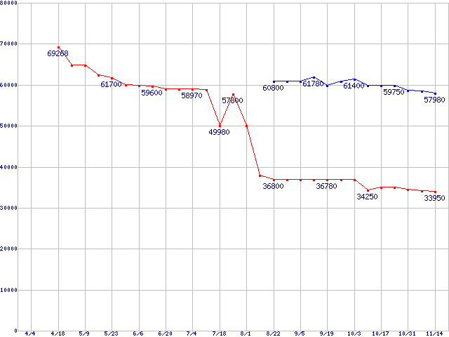 CPU主要製品(最安値3万円~6万円未満)の最安値推移