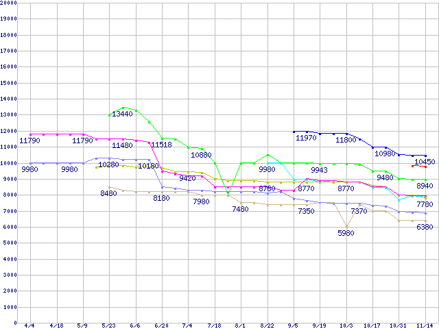 LGA775 (FSB 1066MHz,Dual Core,TDP 65W)の最安値推移