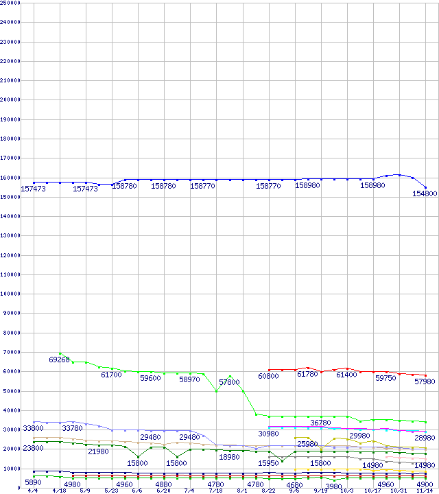 | Intel系CPUの最安値推移 | | | (2008年4月4日~2008年11月14日) |