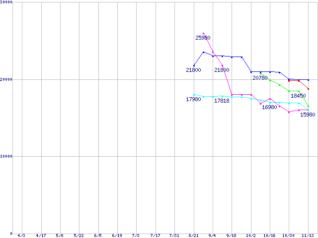 HDD/SSD主要製品(最安値1万5千円~2万円未満)の最安値推移