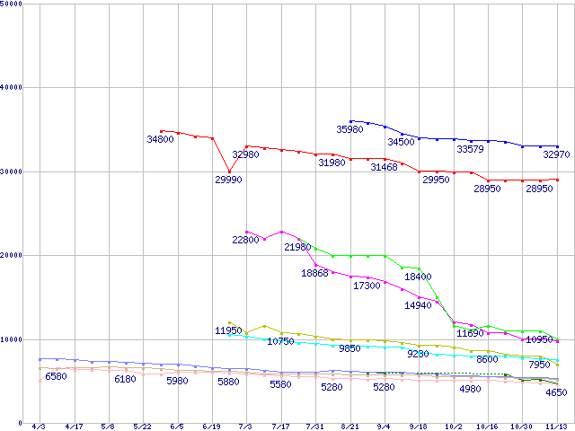 ※点線部は販売店が確認できなかった、または調査データがないことを示します