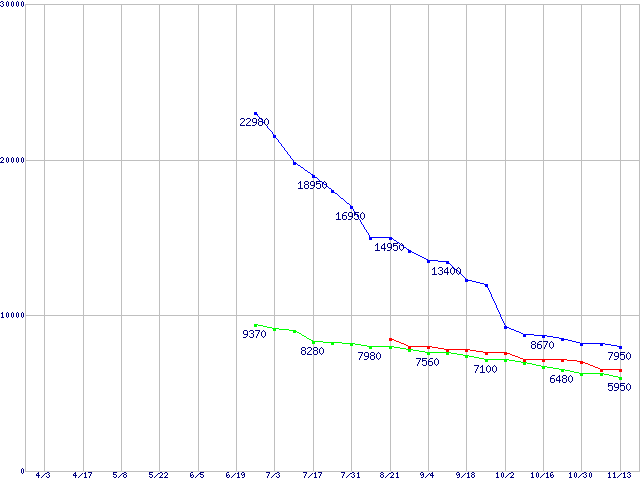 HDD 250~300GB未満の最安値推移