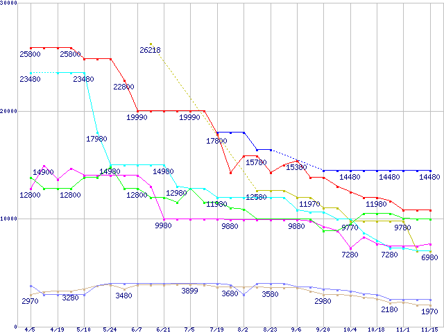 ※点線部は販売店が確認できなかった、または調査データがないことを示します