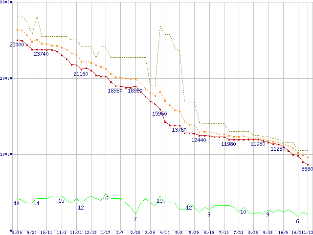 | HDS721075KLA330 (750GB,32MB)の価格推移 | | | (2007年8月30日~2008年11月13日) |