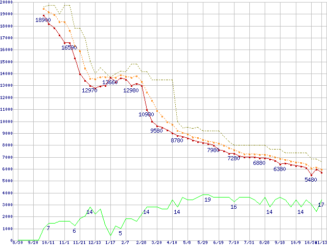 | ST3500320AS (500GB,32MB)の価格推移 | | | (2007年8月30日~2008年11月13日) |
