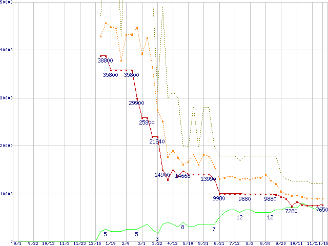 メモリ主要製品の最安値推移