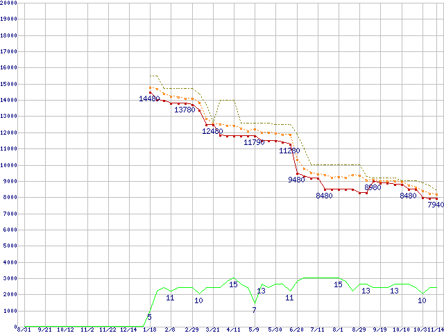 | Athlon X2 5400 (2.8GHz,L2 512KB×2)の価格推移 | | | (2007年8月31日~2008年11月14日) |