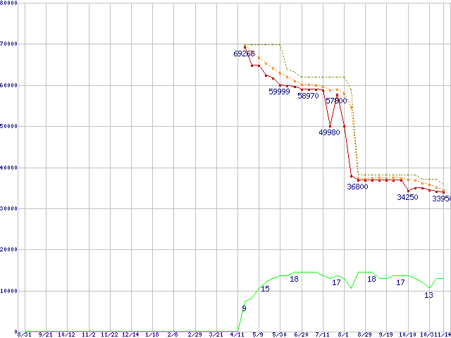| Core 2 Quad Q9550 (2.83GHz,L2 6MB×2)の価格推移 | | | (2007年8月31日~2008年11月14日) |