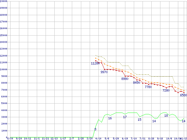 | WD6400AAKS (640GB)の価格推移 | | | (2007年8月30日~2008年11月13日) |