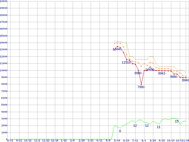 | Athlon X2 5600 (2.9GHz,L2 512KB×2)の価格推移 | | | (2007年8月31日~2008年11月14日) |
