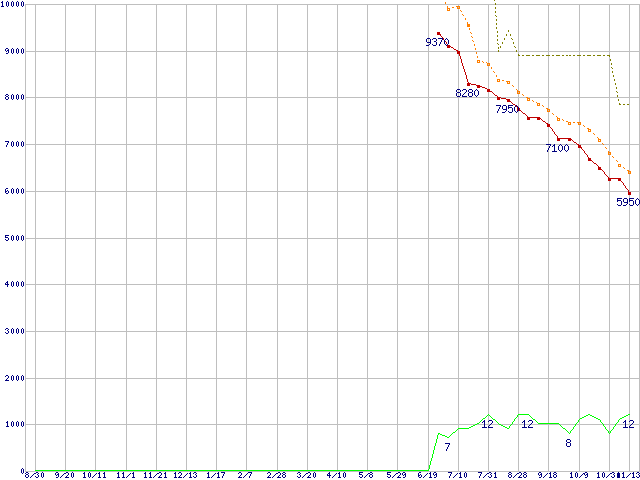 | HTS543225L9A300 (250GB,8MB)の価格推移 | | | (2007年8月30日~2008年11月13日) |