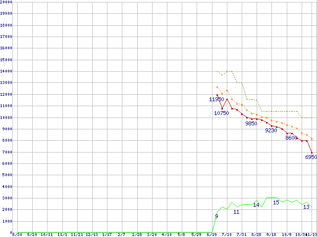 | HTS543232L9A300 (320GB,8MB)の価格推移 | | | (2007年8月30日~2008年11月13日) |
