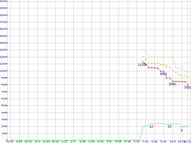 | WD1600BEKT (160GB,16MB)の価格推移 | | | (2007年8月30日~2008年11月13日) |