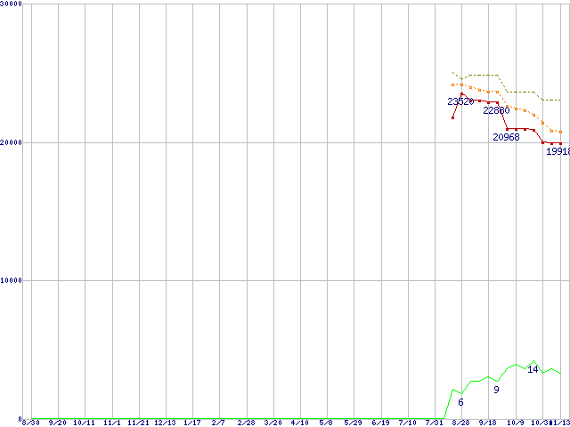| WD1500HLFS (150.0GB)の価格推移 | | | (2007年8月30日~2008年11月13日) |