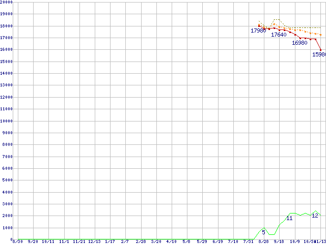 | WD740HLFS (74.0GB)の価格推移 | | | (2007年8月30日~2008年11月13日) |