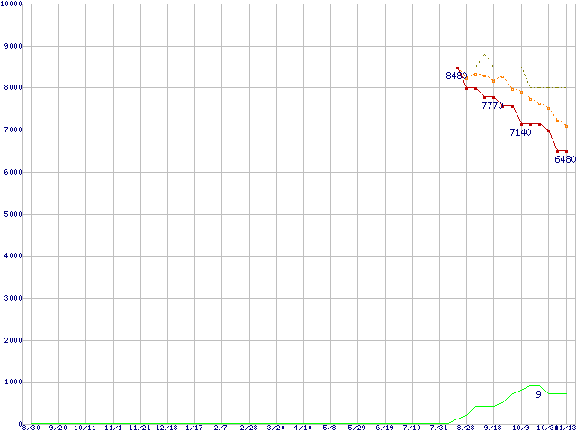 | WD2500BEVT (250GB,8MB)の価格推移 | | | (2007年8月30日~2008年11月13日) |