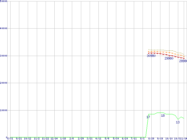 | Core 2 Duo E8600 (3.33GHz,L2 6MB)の価格推移 | | | (2007年8月31日~2008年11月14日) |