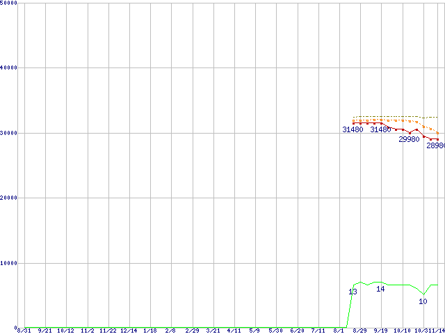 | Core 2 Quad Q9400 (2.66GHz,L2 3MB×2)の価格推移 | | | (2007年8月31日~2008年11月14日) |