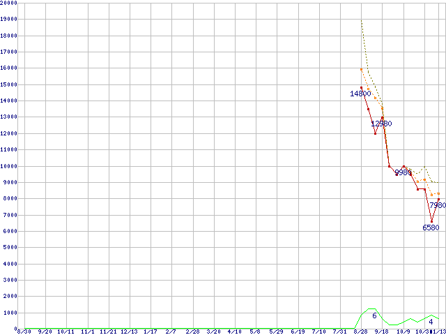 | CSSD-SM32NP (32GB,MLC)の価格推移 | | | (2007年8月30日~2008年11月13日) |