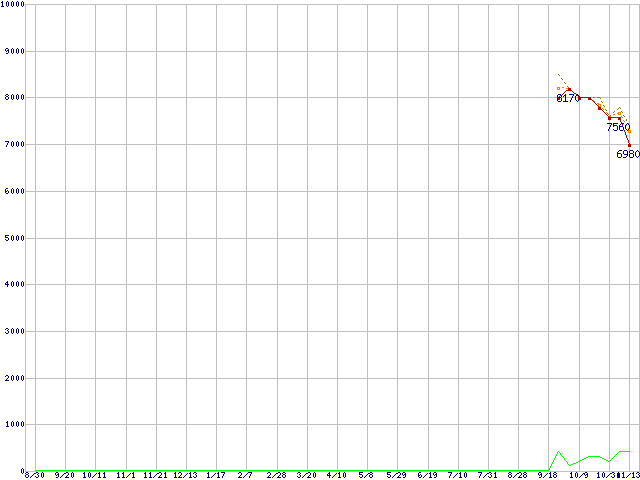 | WD5001AALS (500GB,32MB)の価格推移 | | | (2007年8月30日~2008年11月13日) |