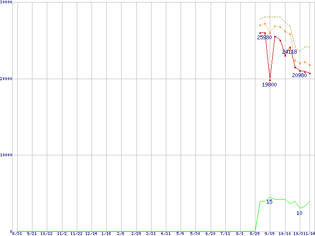 | Core 2 Quad Q8200 (2.33GHz,L2 2MB×2)の価格推移 | | | (2007年8月31日~2008年11月14日) |