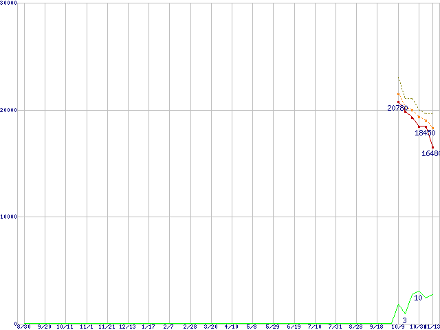 | ST31500341AS (1.5TB,32MB)の価格推移 | | | (2007年8月30日~2008年11月13日) |