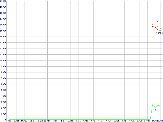 | Core 2 Duo E7400 (2.80GHz,L2 3MB)の価格推移 | | | (2007年8月31日~2008年11月14日) |