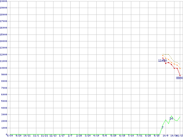 | WD10EADS (1TB,32MB)の価格推移 | | | (2007年8月30日~2008年11月13日) |