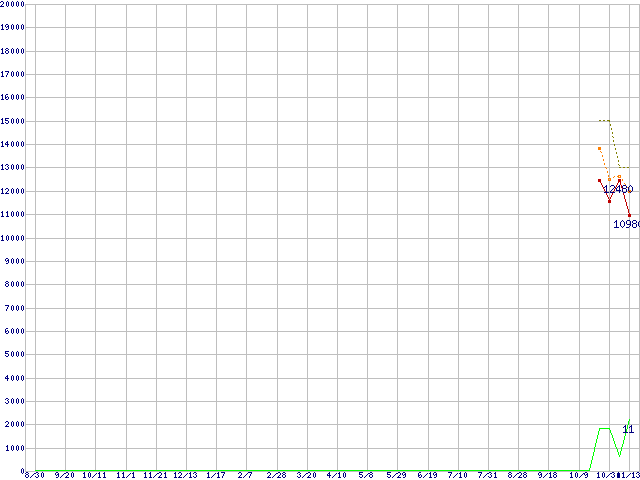 | HDT721010SLA360 (1TB,16MB)の価格推移 | | | (2007年8月30日~2008年11月13日) |