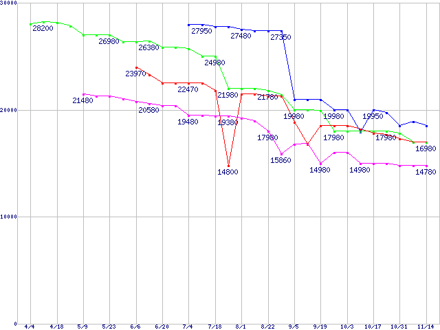 Socket AM2 (HyperTransport 3.0,Quad Core)の最安値推移