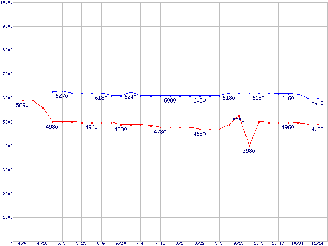 Socket AM2 (HyperTransport,Dual Core,TDP 65W)の最安値推移