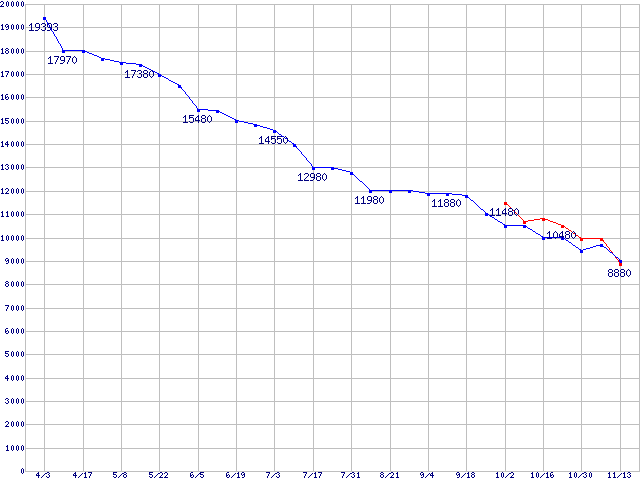 WD Caviar Blue (7200rpm,3Gb/s,16MB)の最安値推移