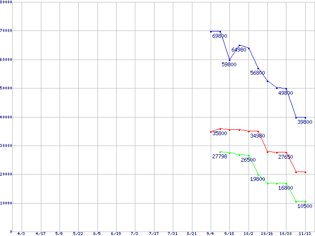 | OCZ Core Series V2 SATA II 2.5" SSD (SSD,3Gb/s,2.5インチ)の最安値推移 | | | (2008年4月3日~2008年11月13日) |