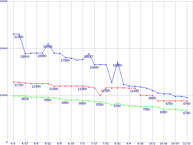 Spinpoint F1 (7200rpm,3Gb/s)の最安値推移