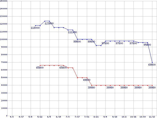 Spinpoint M6 (5400rpm,1.5Gb/s,2.5インチ)の最安値推移