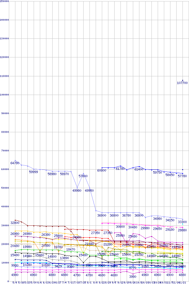 ※製品名をクリックすると個別のグラフを表示します ※点線部は販売店が確認できなかった、または調査データがないことを示します |