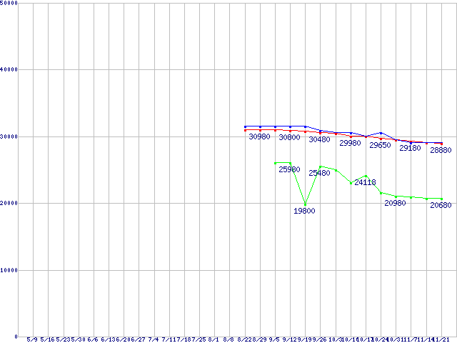 CPU主要製品(最安値2万円~3万円未満)の最安値推移