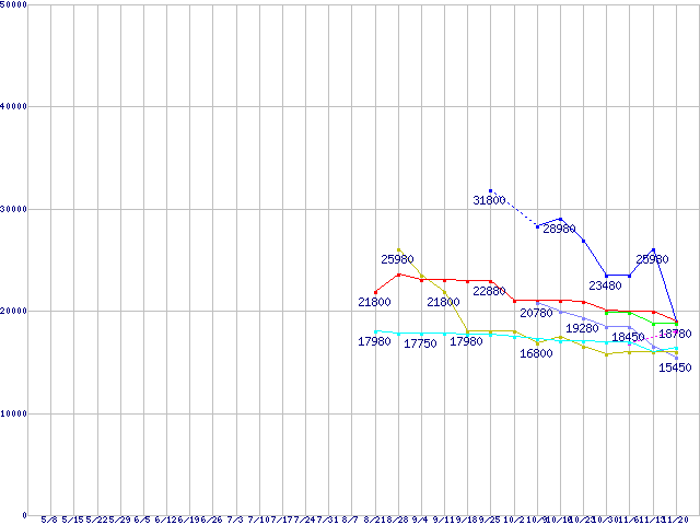HDD/SSD主要製品(最安値1万5千円~2万円未満)の最安値推移