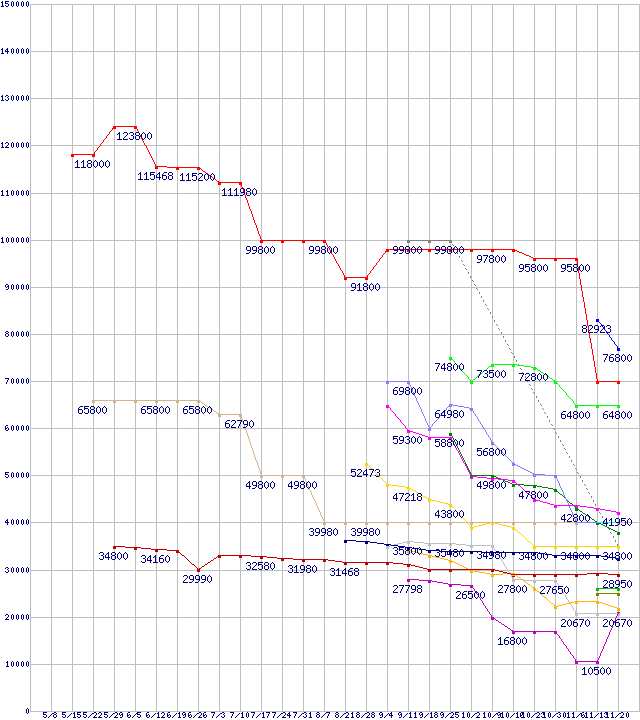 | HDD/SSD主要製品(最安値2万円以上)の最安値推移 | | | (2008年5月8日~2008年11月20日) |