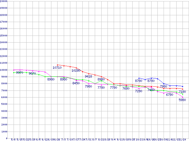 HDD 750GB~1TB未満の最安値推移