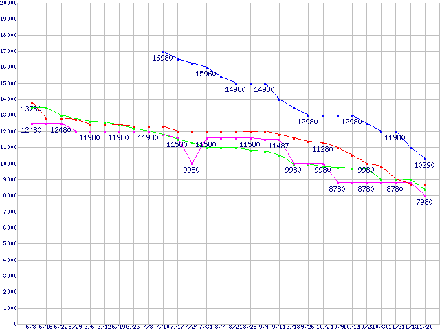 ※点線部は販売店が確認できなかった、または調査データがないことを示します