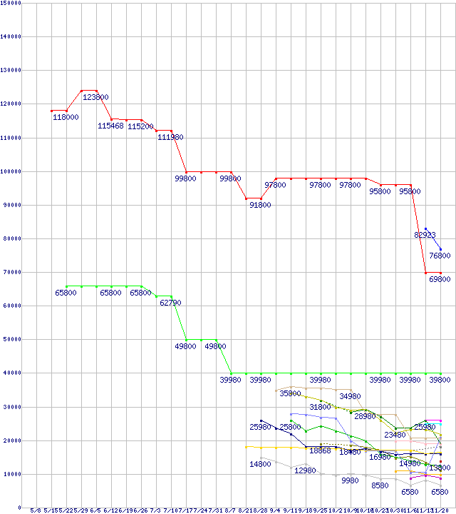 | HDD/SSD 30GB~80GB未満の最安値推移 | | | (2008年5月8日~2008年11月20日) |